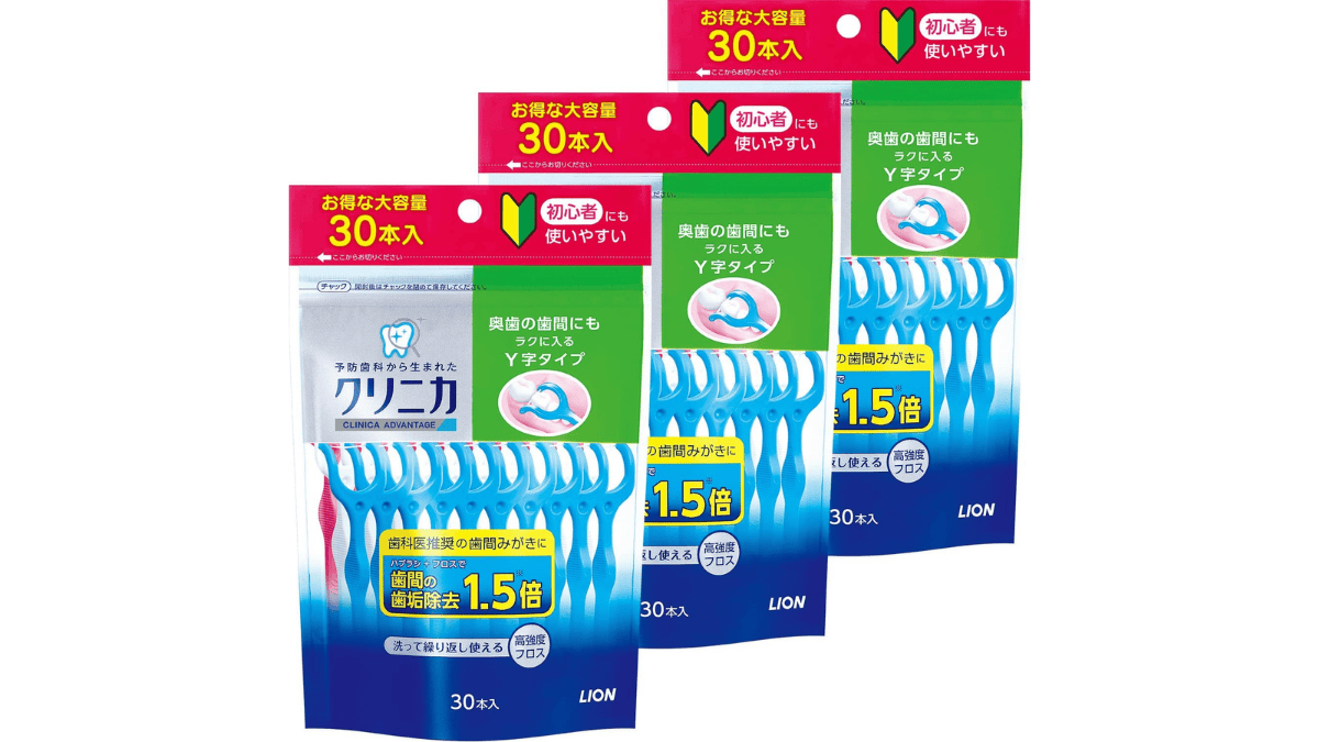 ここでおすすめの商品を紹介する。クリニカ アドバンテージ デンタルフロス Y字タイプ 30本入×3個だ